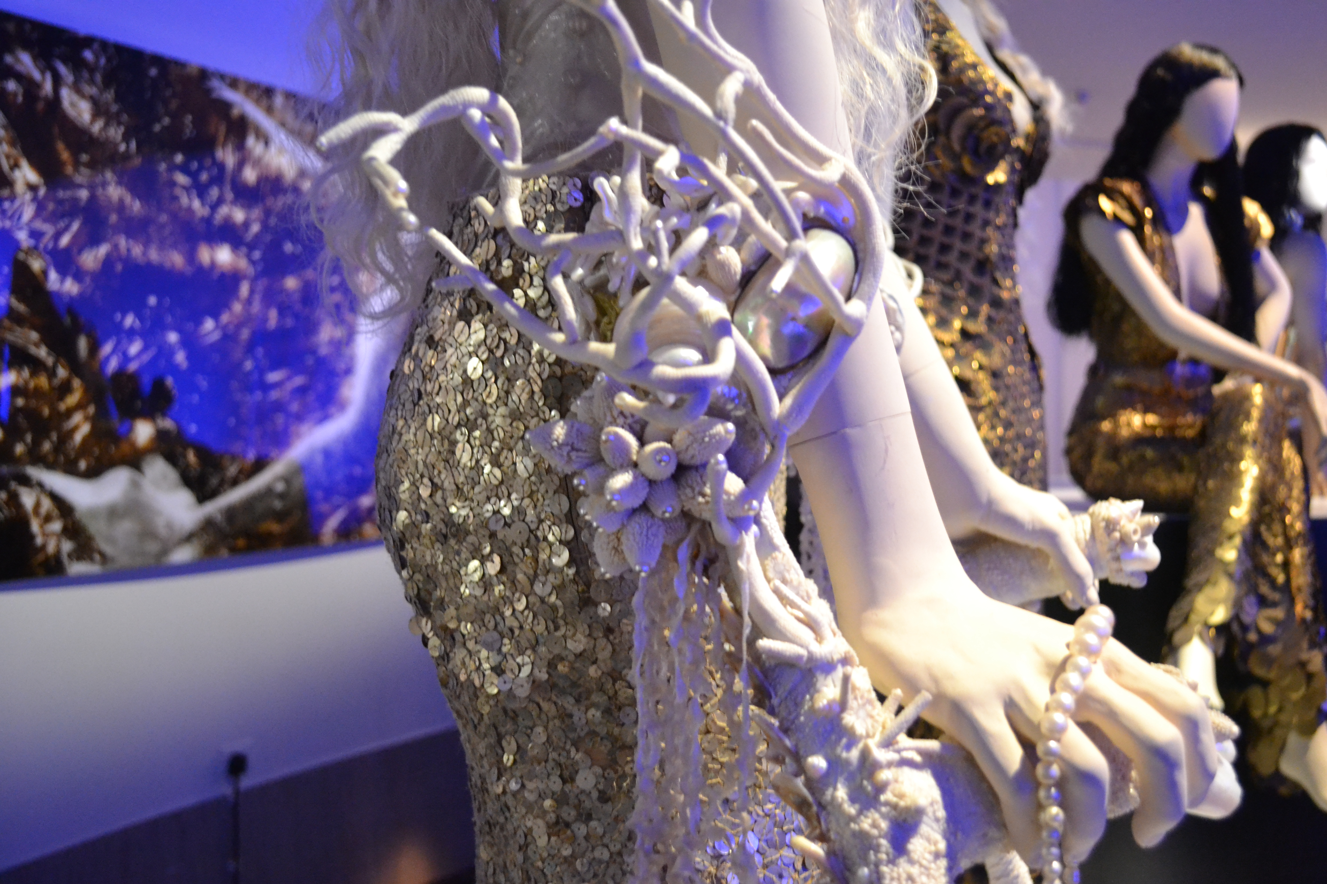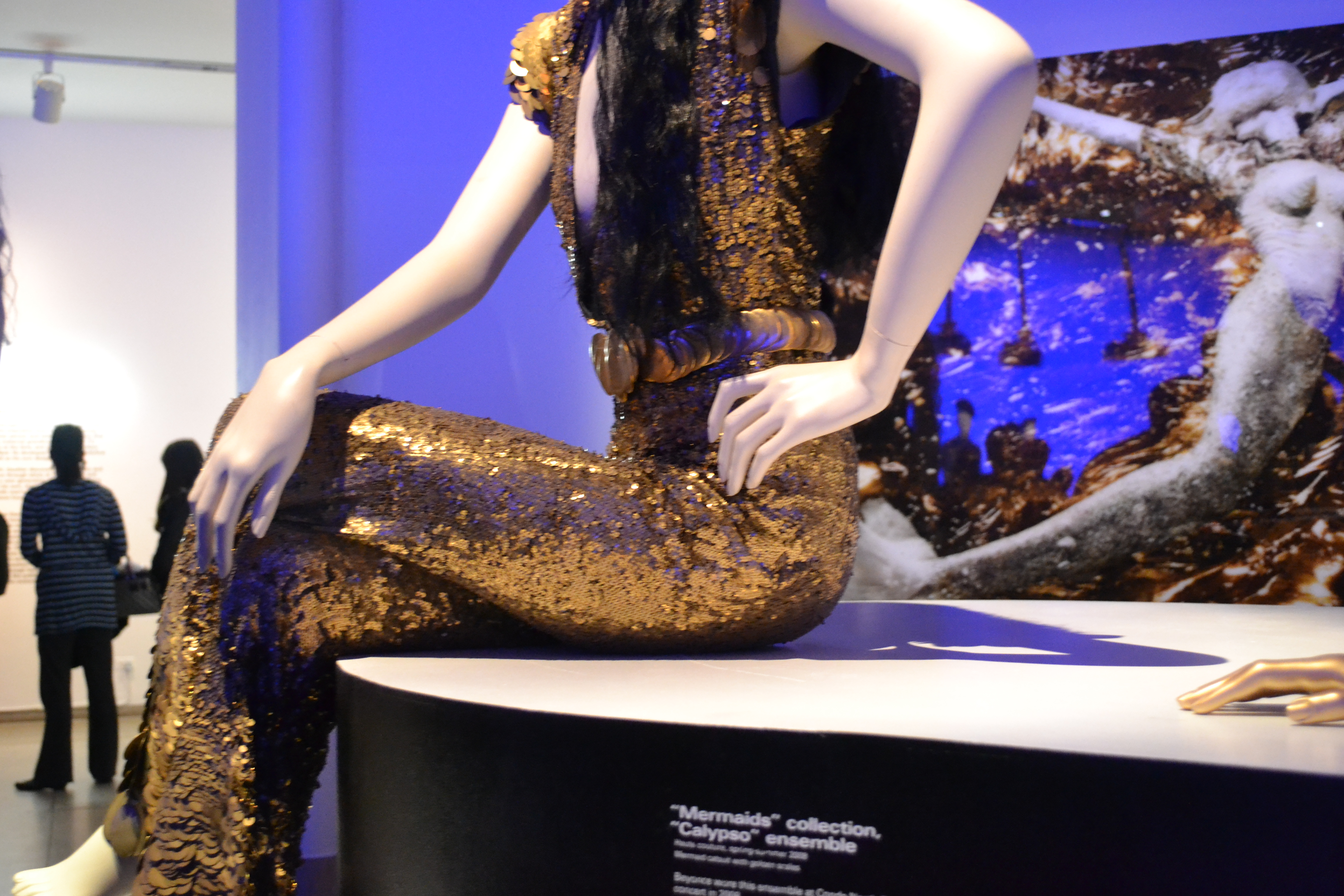 This first group of photos (taken by myself) are from Gaultier’s “Mermaids” collection, Spring/Summer Couture 2008. Each fashion piece represents everything plus more of a Mermaid Goddess. From the mermaid catsuit w/ golden scales to the hard shelled/ sea shells bustiers. Whites, golds, silvers, shimmers, precise details, and sequins took over fashions in this collection, all STUNNING.