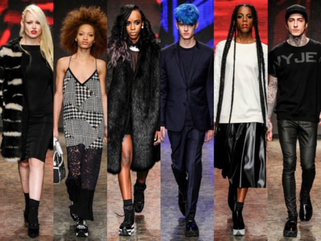 There was nothing particularly new from DKNY this season, same urban street style formula for the fashions. But what definitely caught my attention, and what I love love love the most about the show is the Eclectic model casting. Fashions were modeled by REAL New Yorkers. “Rapper Angel Haze and DJs Hannah Bronfman and Chelsea Leyland and more unrecognizable characters scouted on the streets, including contemporary artists, pro skateboarders, nightlife hosts, and more.”-Brittany Adams
