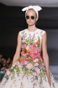 “A girl wakes, maybe she’s still dressed from the night before, maybe she swathes herself in a striped sheet or slips into her beau’s pj’s. It’s bright so she puts on sunglasses. Her head hurts. She wraps it in a napkin from the champagne bucket. And she goes for a walk in the garden. There’s a dry, warm wind, blossoms are blowing, they cloud her…” Tim Blanks describing Giambattista Valli’s Fall 2014 Couture collection!